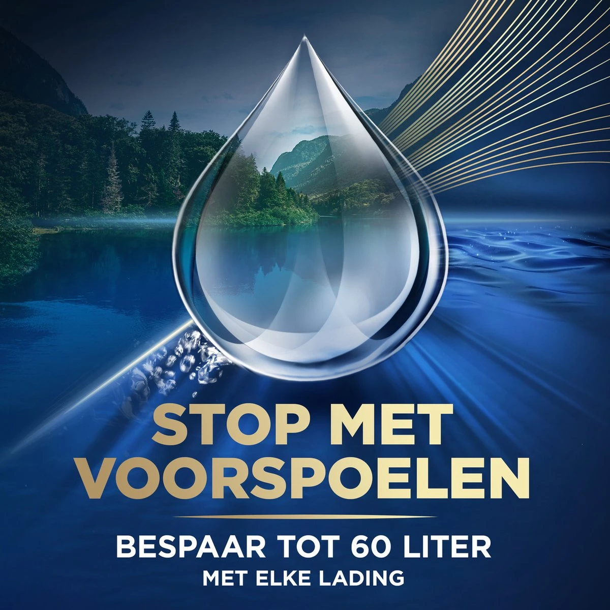 * 60 liter minder water dan met voorspoelen, studie geleid door ISPOS in Frankrijk in 2019.