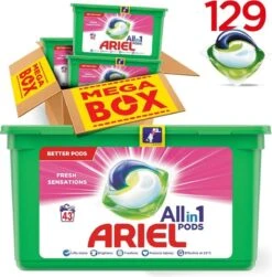 Ariel All In 1 Wasmiddel Pods + Ultra Vlekverwijderaar – 3×43 Wasbeurten – Voordeelverpakking